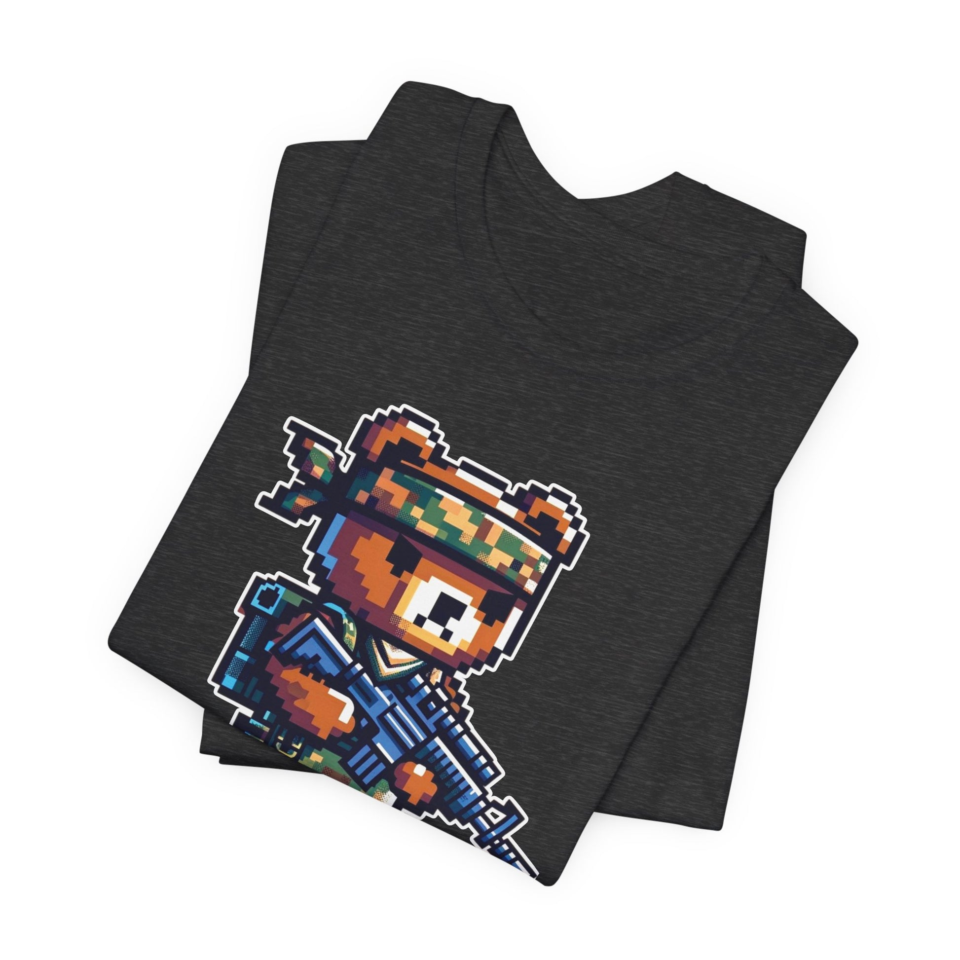 Step out in style with our 8-bit Soldier Bear Crewneck T-shirt, designed for all and available in multiple colors and sizes. Featuring an 8-bit soldier teddy bear, this tee is made with 100% Airlume combed and ring-spun cotton. Its lightweight fabric is easy to layer, breathable, and perfect for active and leisure wear.