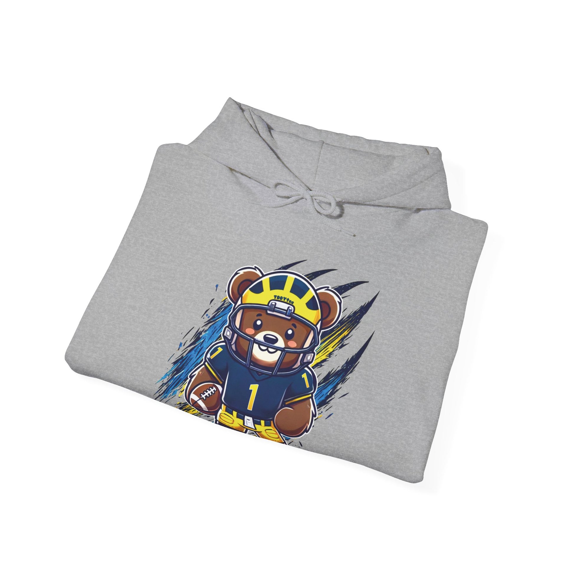 - Design: Features a cartoon football bear suited up in a bold helmet and uniform, holding a football, with a dynamic blue and yellow background.