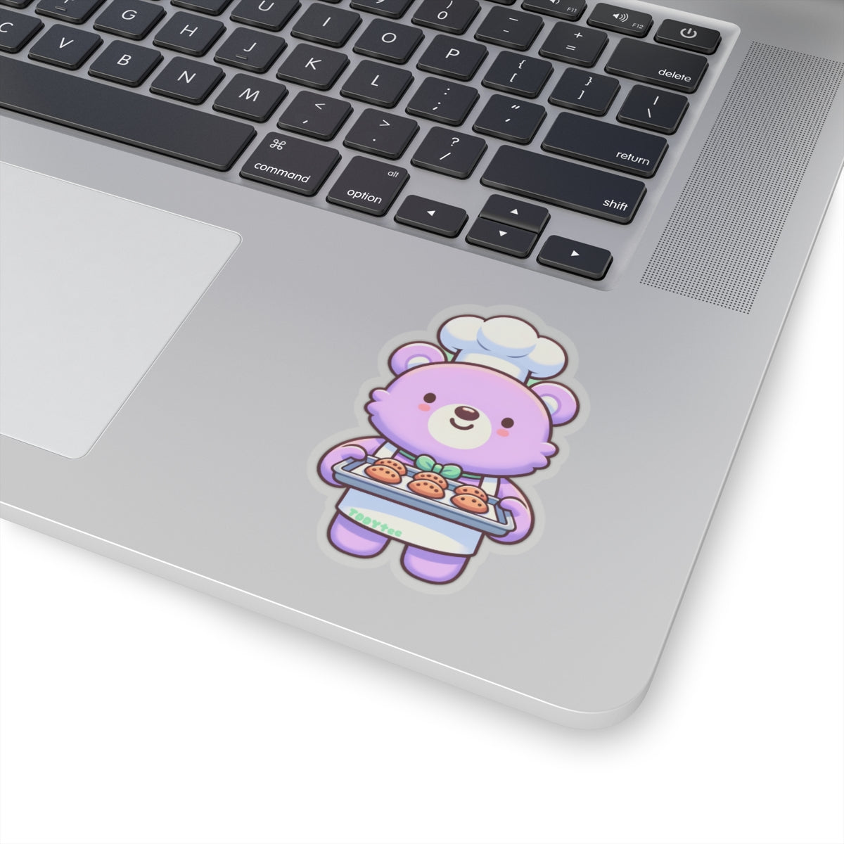 Vinyl kiss-cut sticker featuring a lovely baker bear
