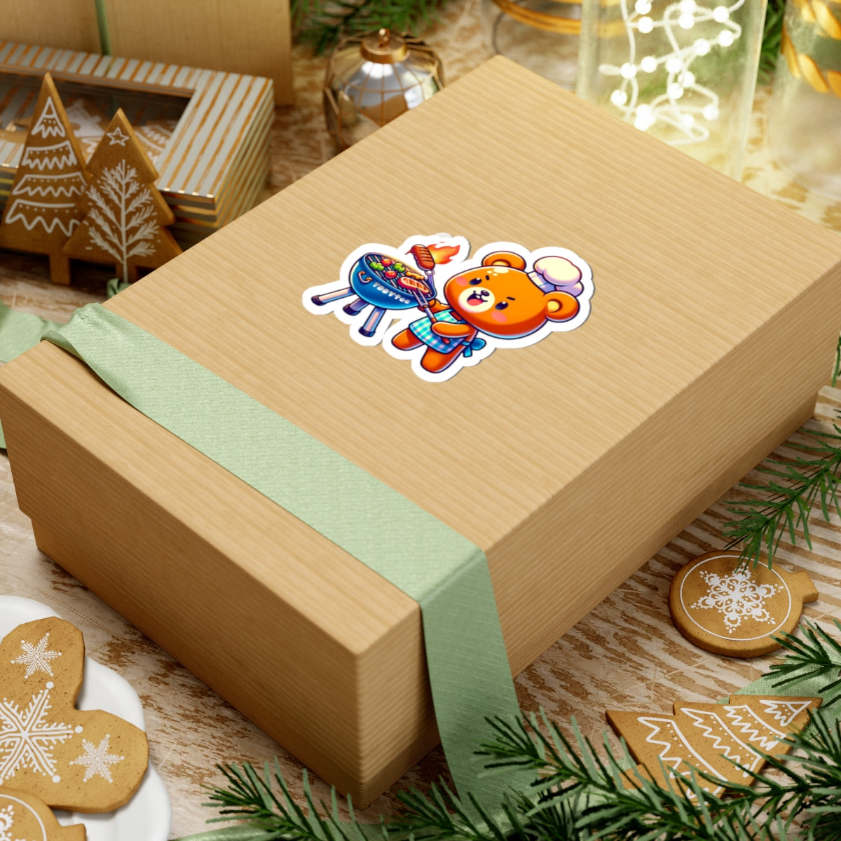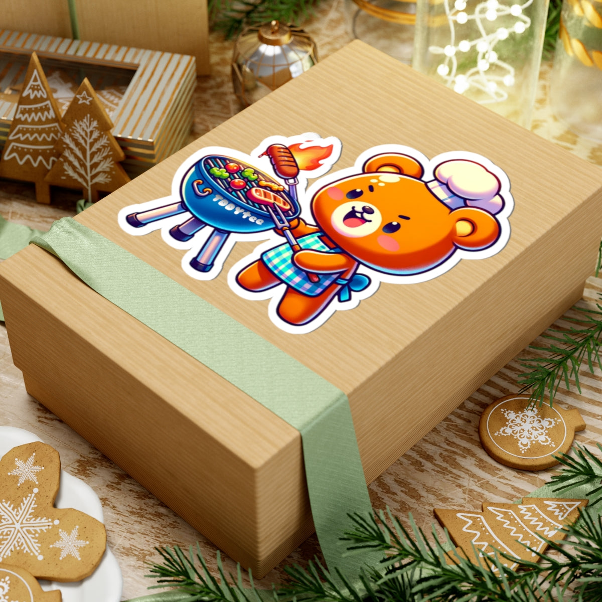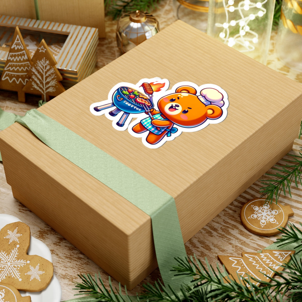 Vinyl kiss-cut sticker featuring a grilling bear