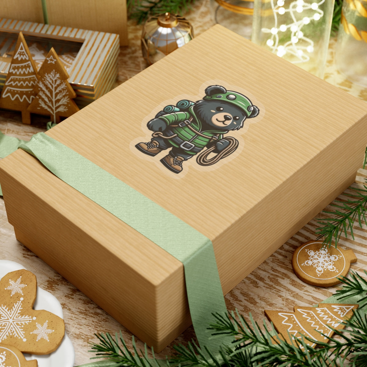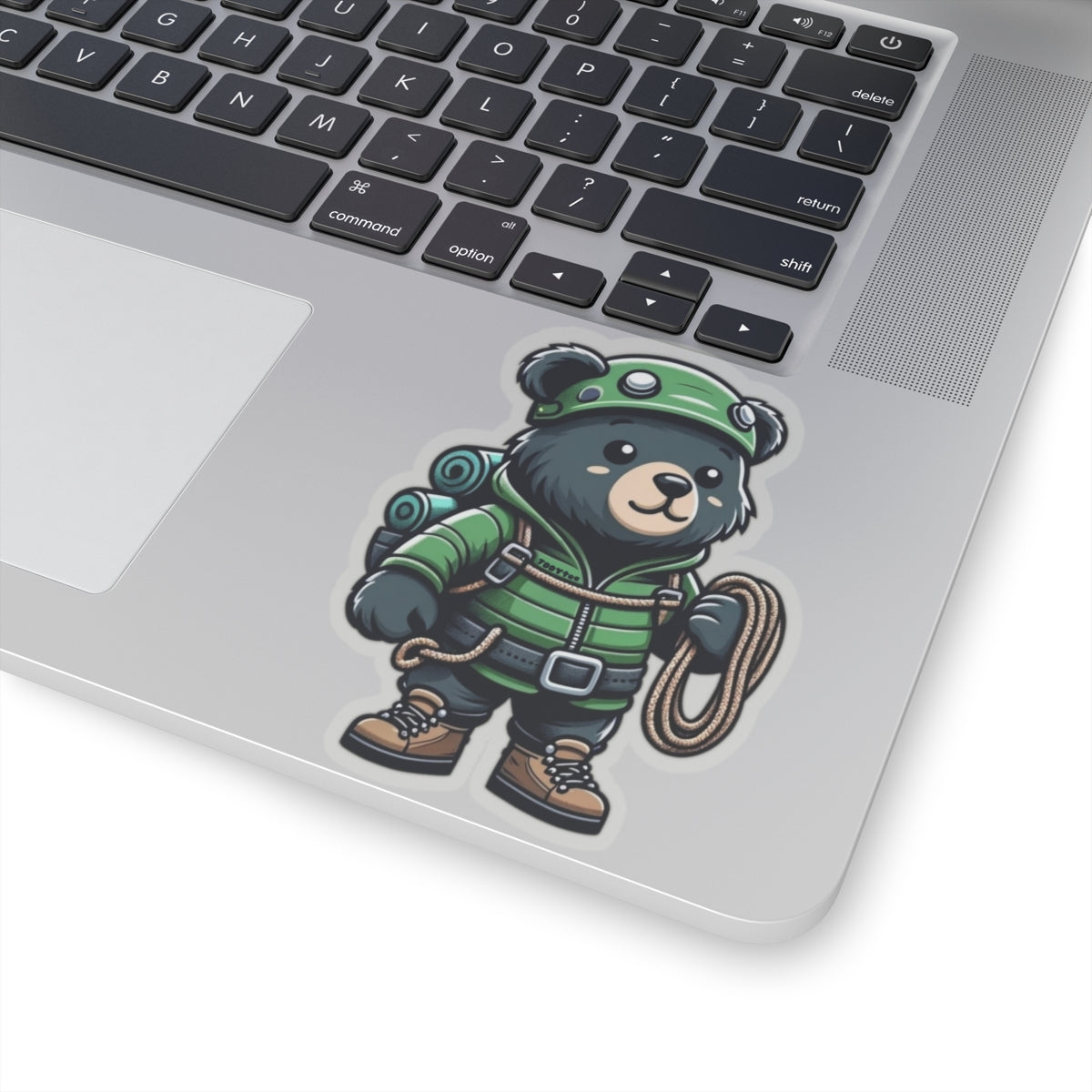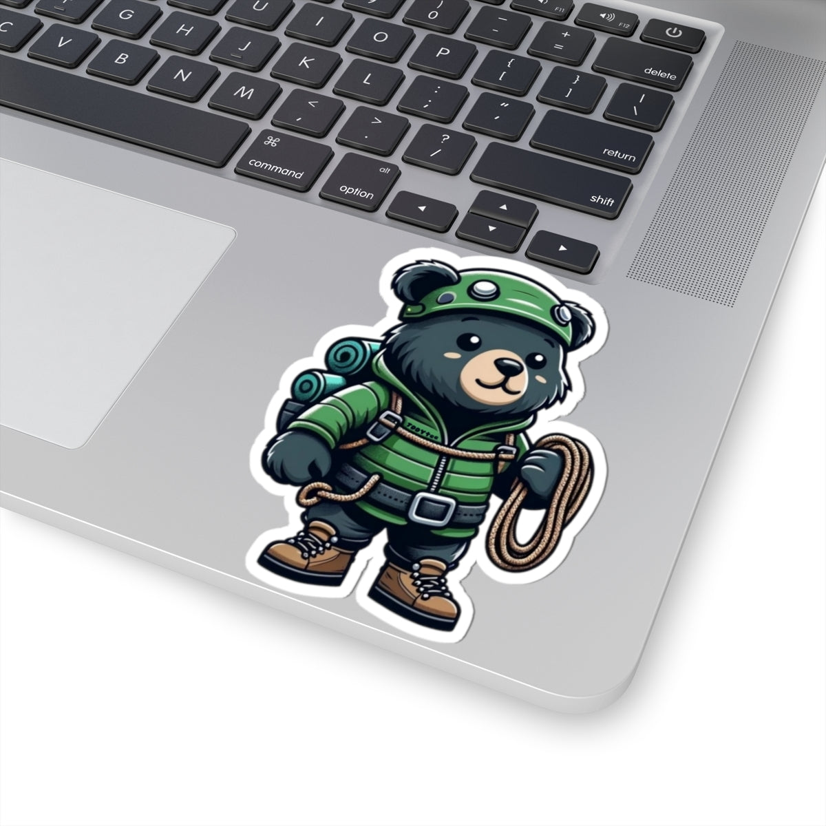 Vinyl kiss-cut sticker featuring an adventurous hiking bear